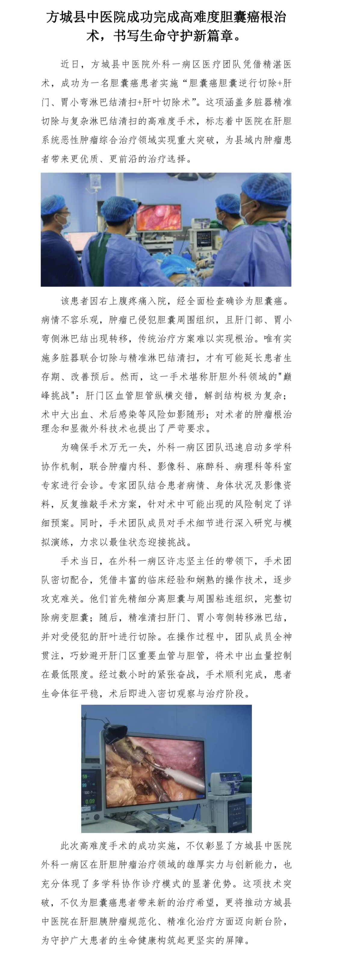 方城县中医院成功完成高难度胆囊癌根治术,书写生命守护新篇章。